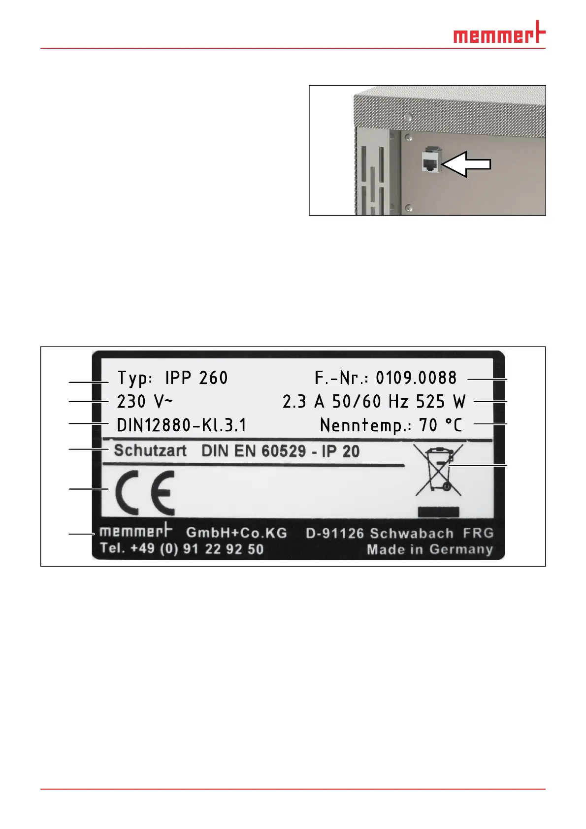 Memmert IPP 55 - Ethernet Interface; Designation (Nameplate)