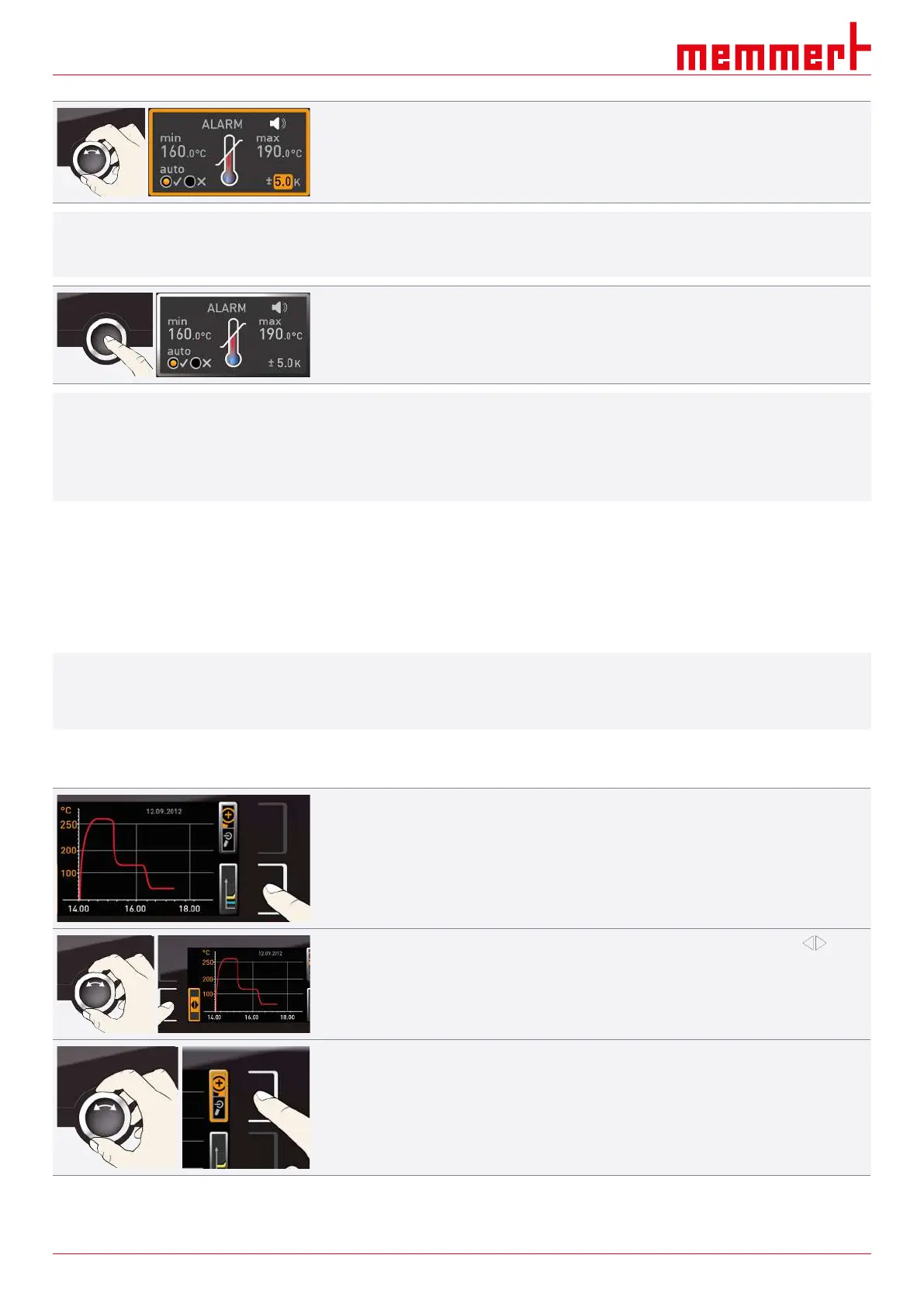 The GRAPH display provides an overview of the chronological sequence of the set values