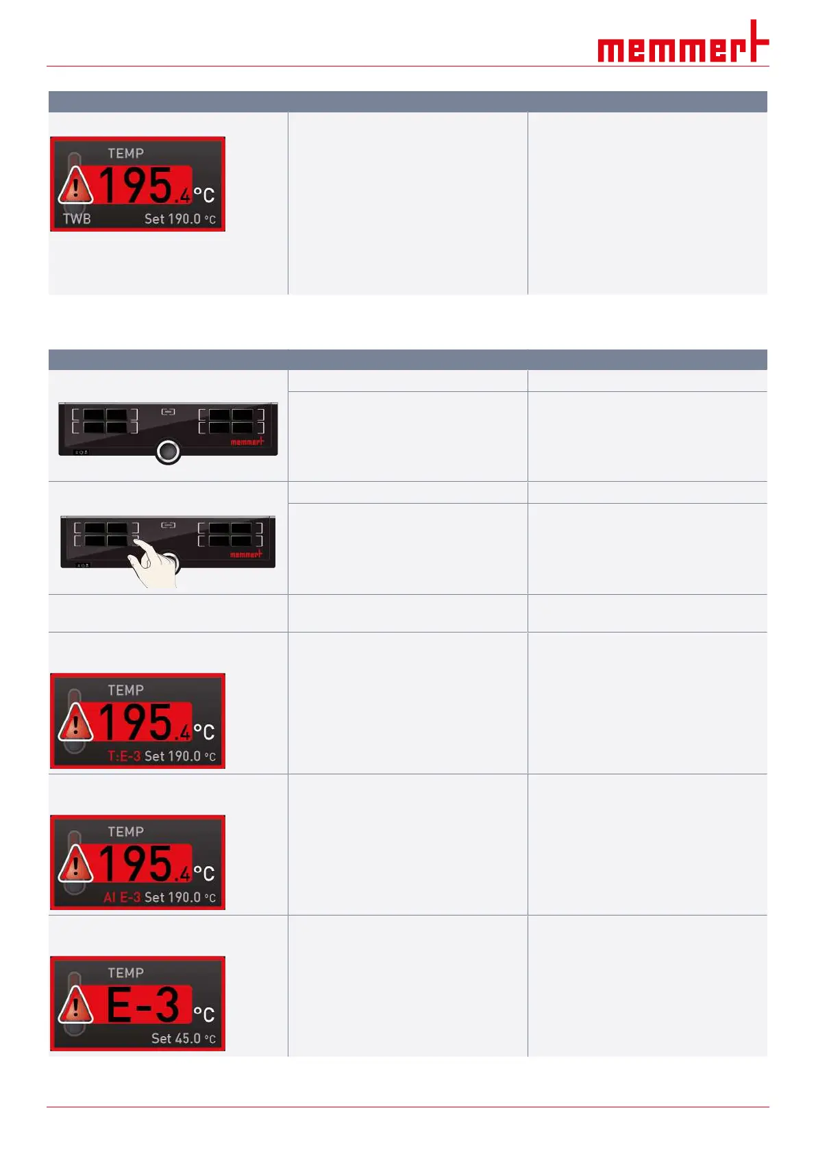 Error message E-3 in the temperature