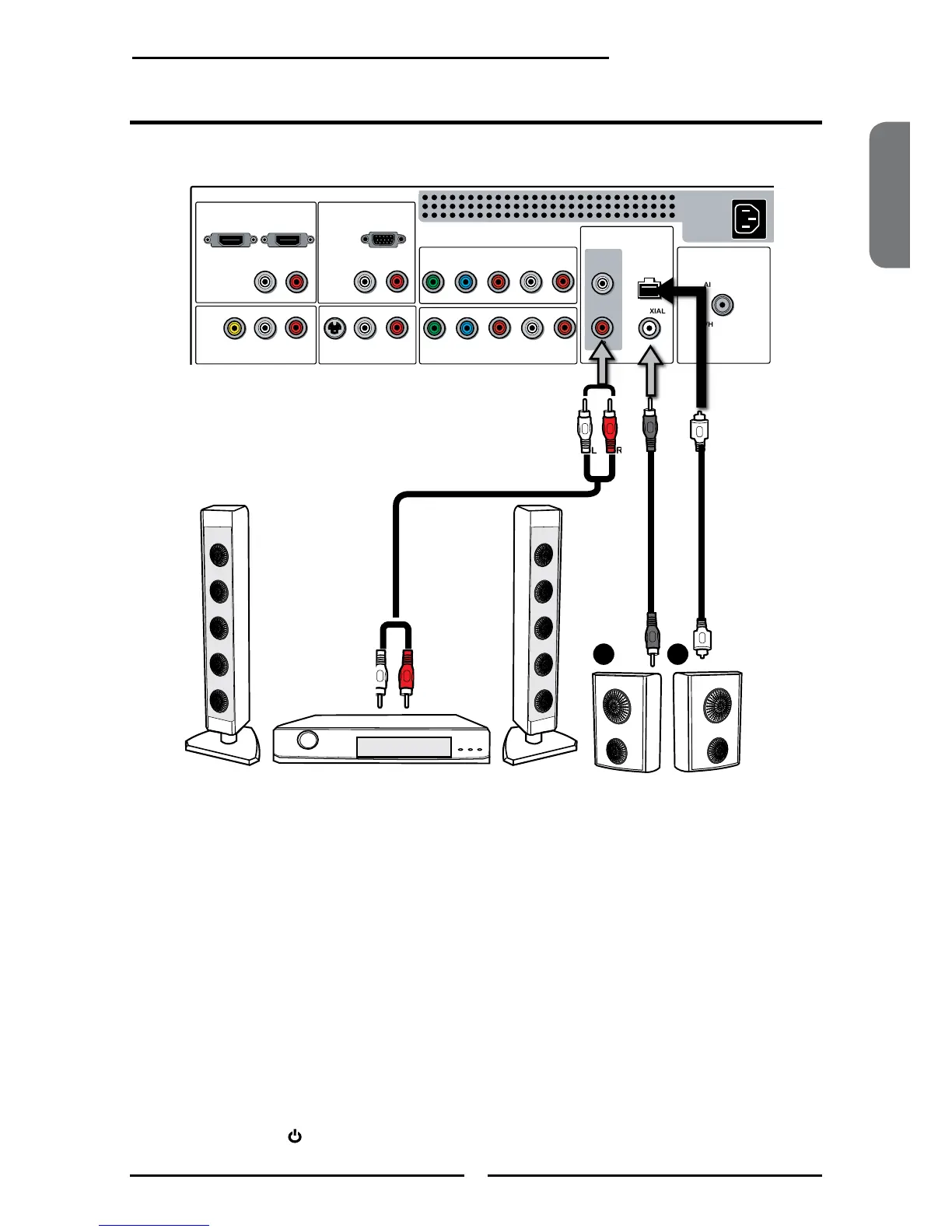 Use a coaxial cable to connect the audio amplier’s COAXIAL IN jacks to LCD TV’s