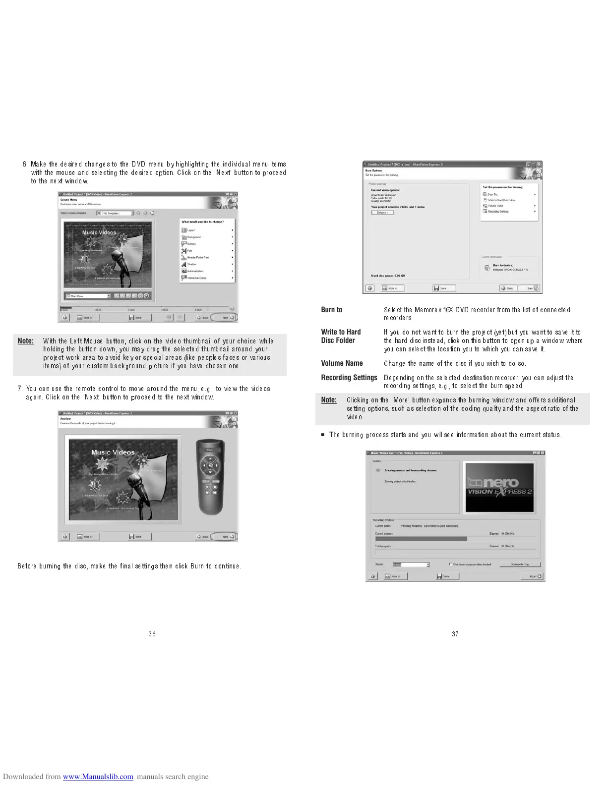 Before burning the disc, make the final settings then click Burn to contin ue.