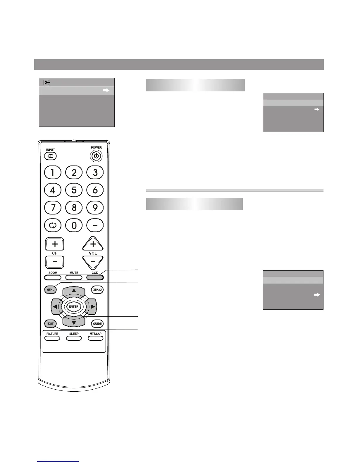 Highlight CC DISPLAY item, press 3or 4 button to select