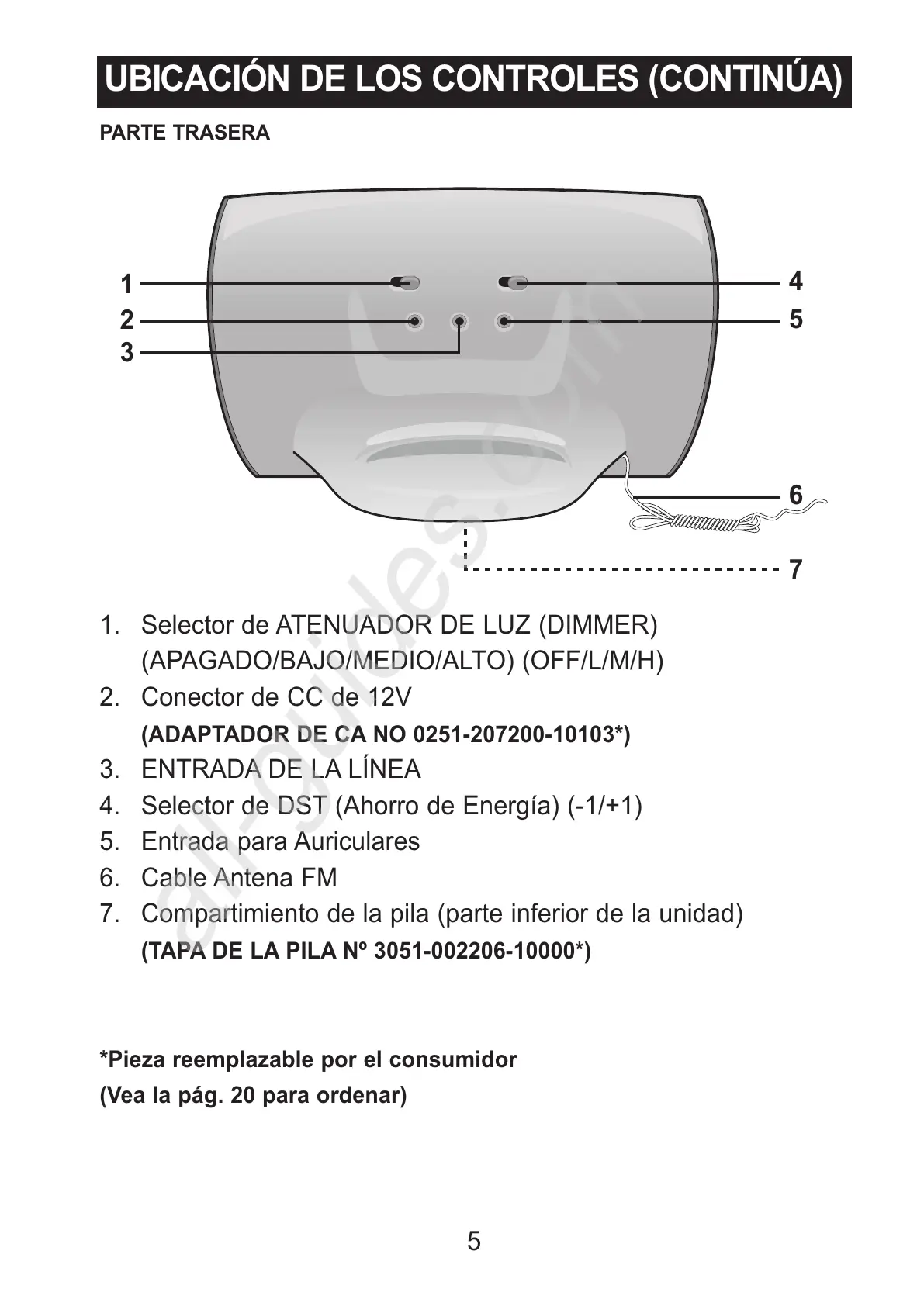 7. Compartimiento de la pila (parte inferior de la unidad)