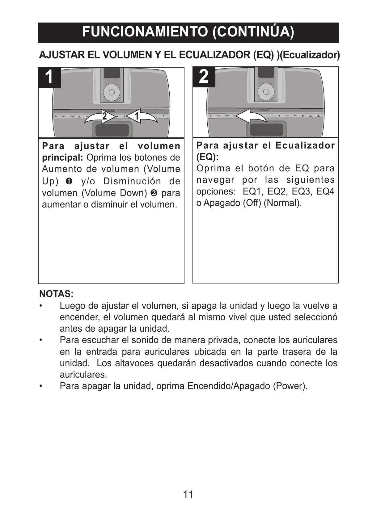 AJUSTAR EL VOLUMEN Y EL ECUALIZADOR (EQ) )(Ecualizador)