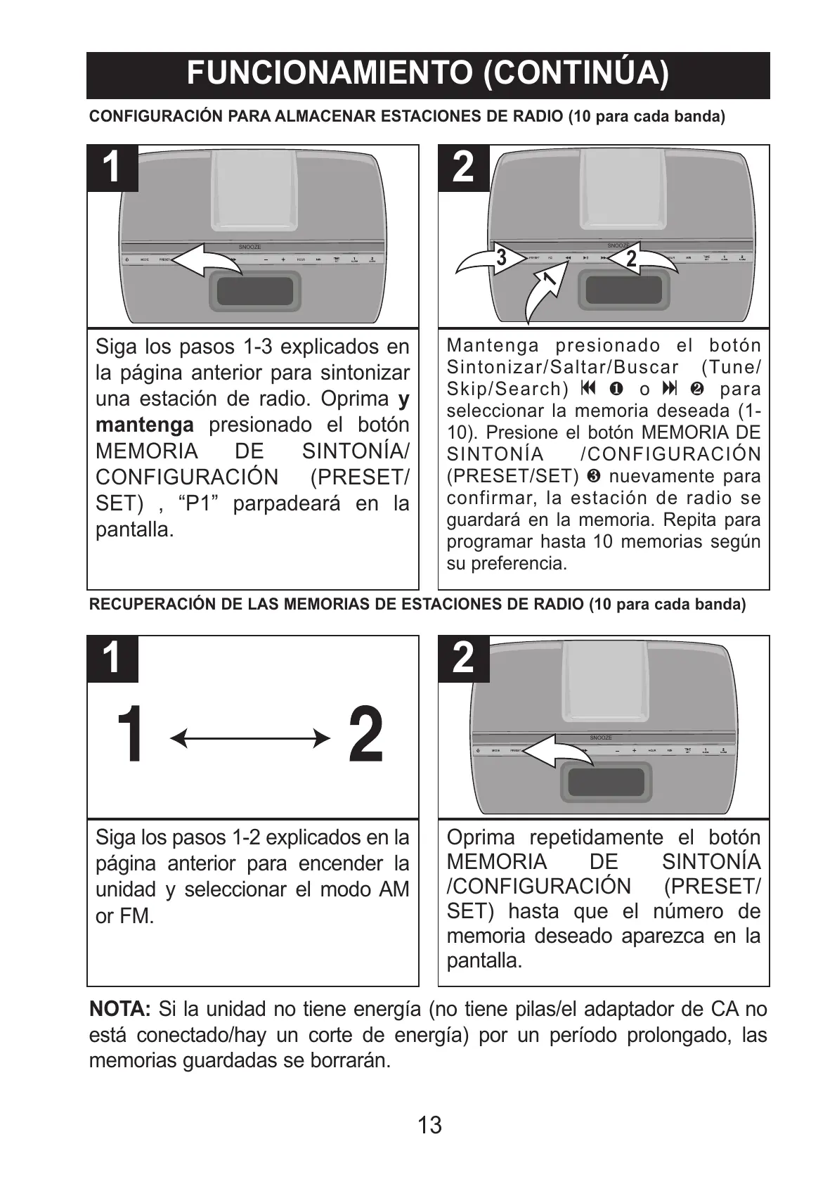 10). Presione el botón MEMORIA DE