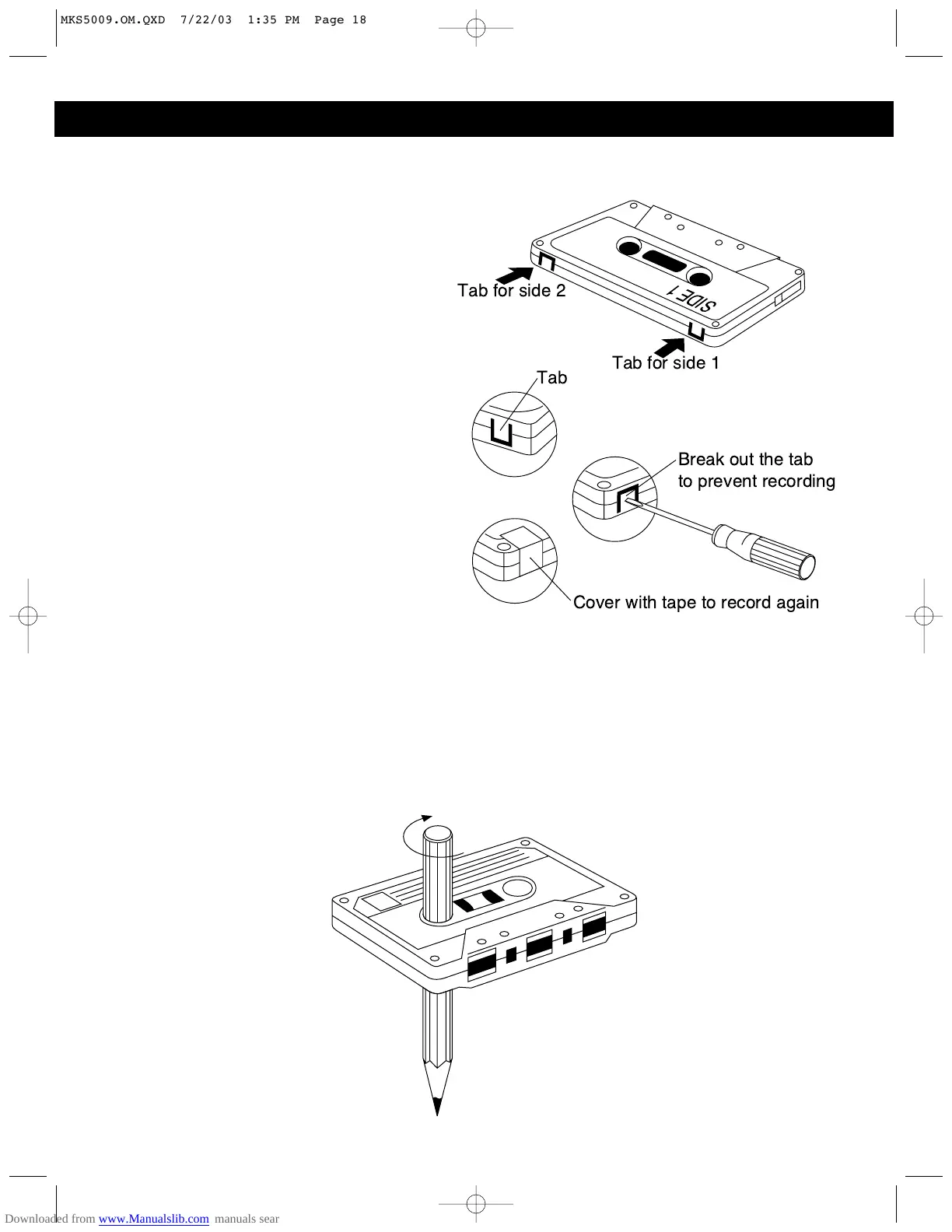 If there is any slack in the cassette, it should be removed before inserting the cassette. Place a pencil in one