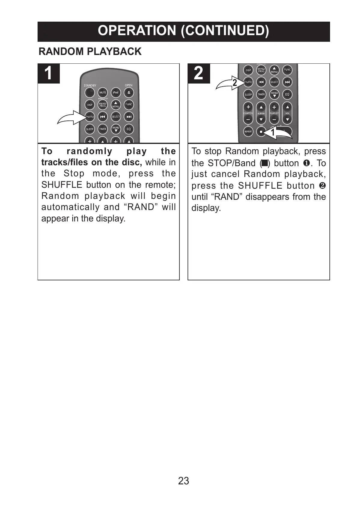 SHUFFLE button on the remote;