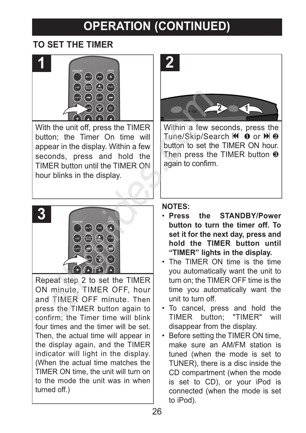 TIMER button; "TIMER" will