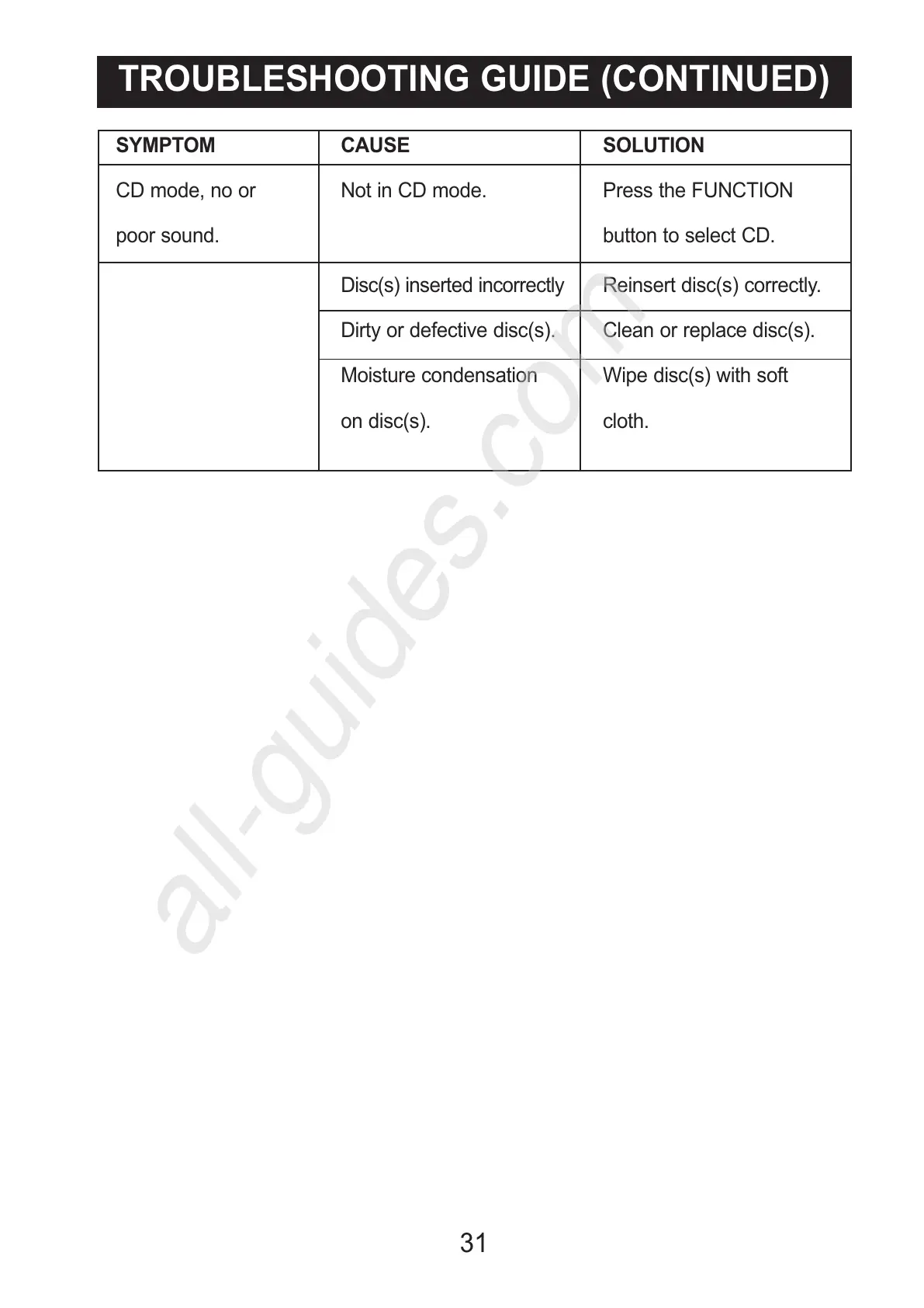 TROUBLESHOOTING GUIDE (CONTINUED)