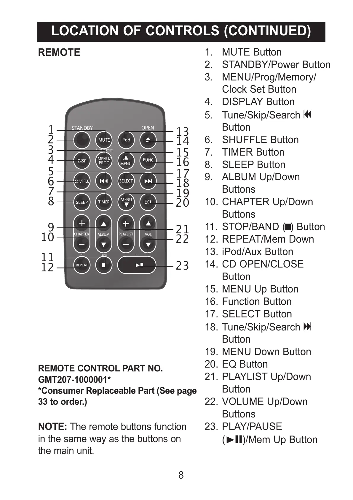 NOTE: The remote buttons function