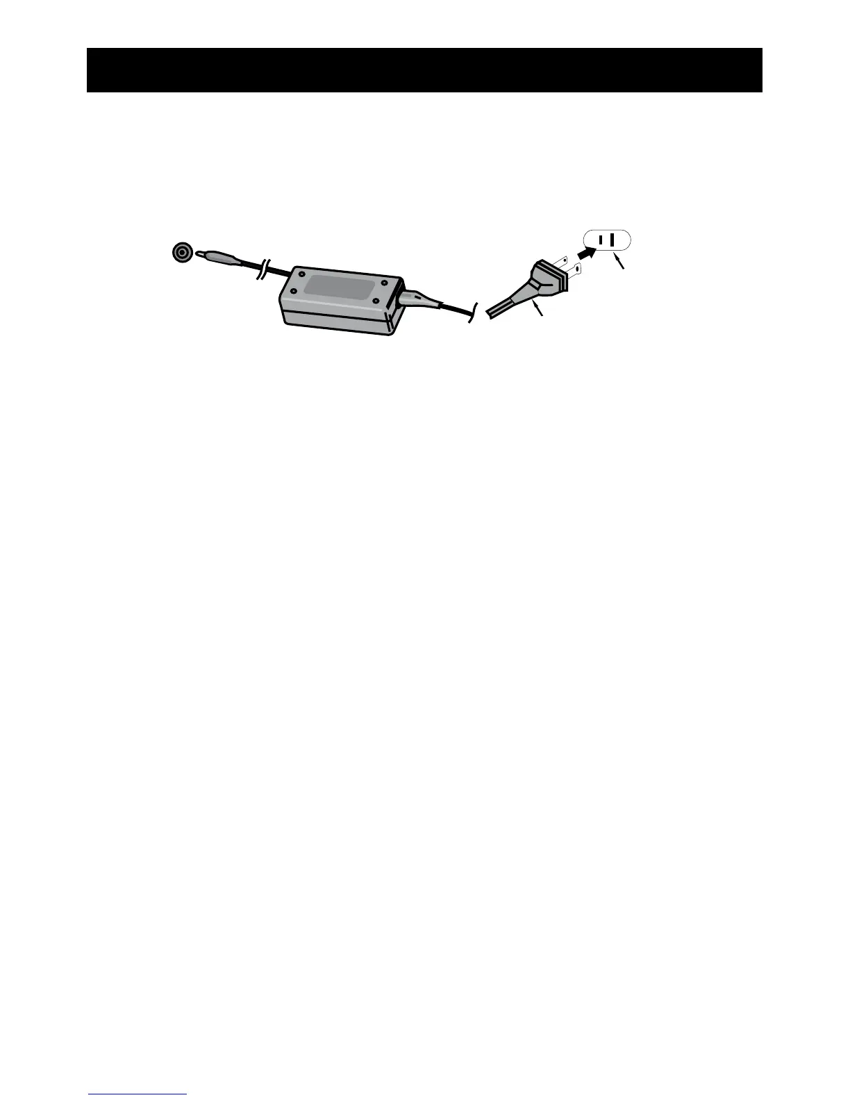 other end to a wall outlet having 120V AC, 60 Hz. AC Adapter, DC 12V