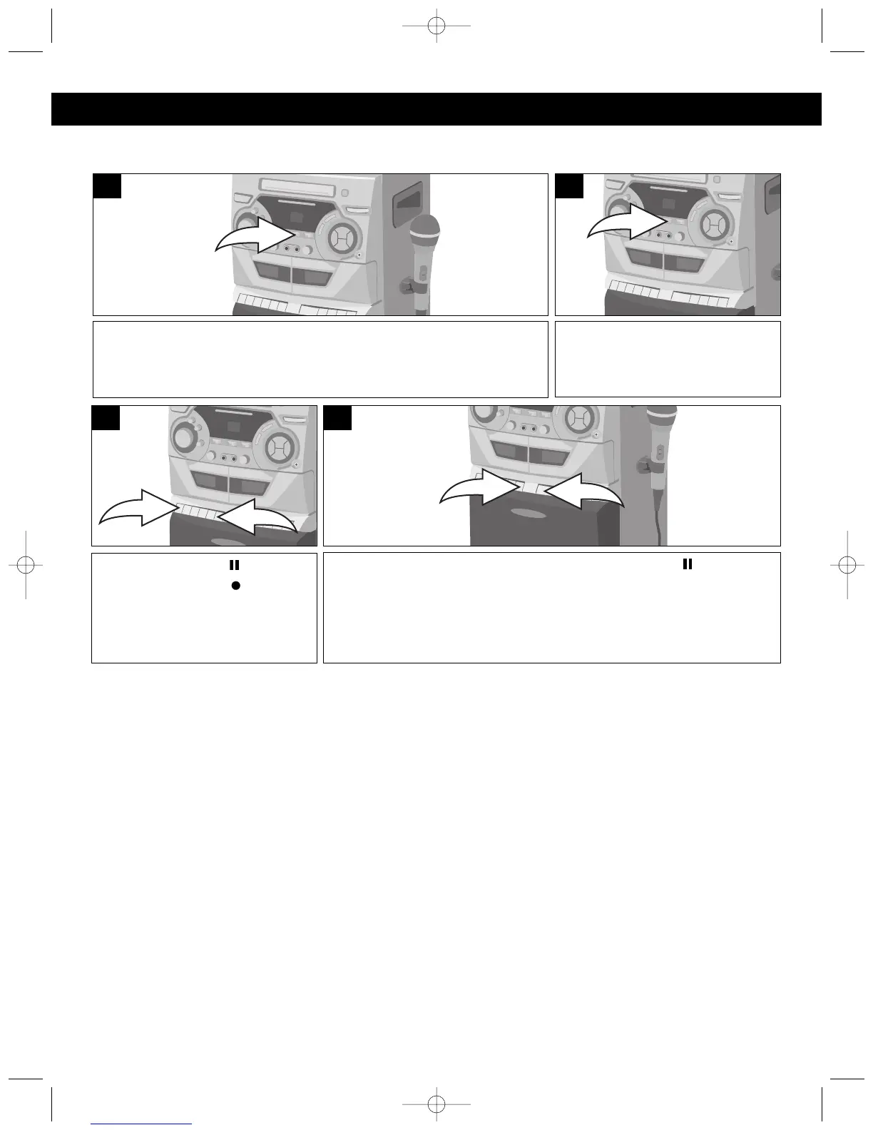 Press the PLAY (❿) button ❶ on Deck 2 and the PAUSE ( ) button ❷ on
