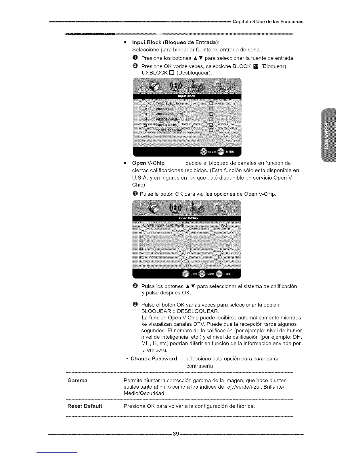 La funci6n Open V-Chip puede recibirse automaticamente mientras
