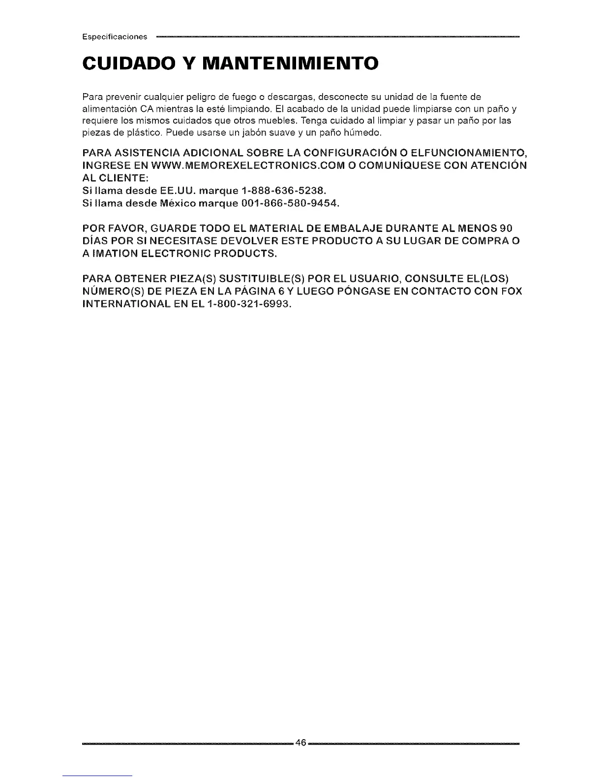 INGRESE EN WWW.MEMOREXELECTRONICS.COM O COMUNiQUESE CON ATENCK_N