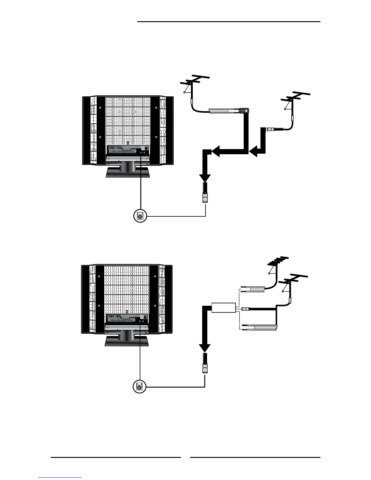 B: Muestra cómo usar una antena externa con VHF y/o UHF separados.
