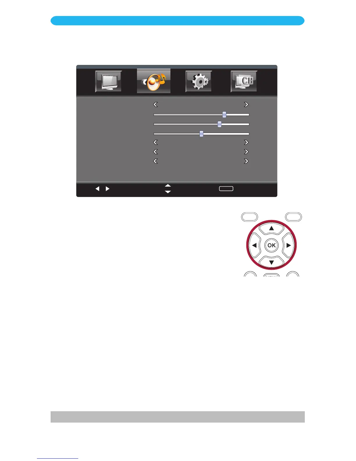 3 Press the q button to select a setting (i.e. Sound Mode, etc.).