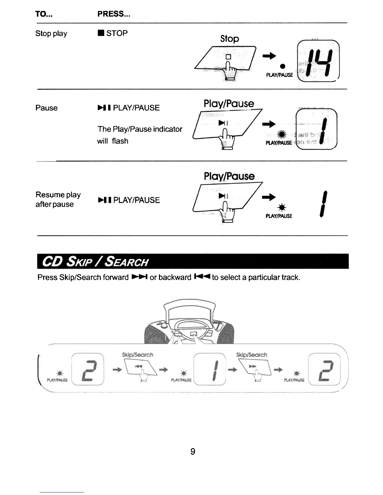 Press Skip/Search forward""'" or backward ~ to select a particular track.