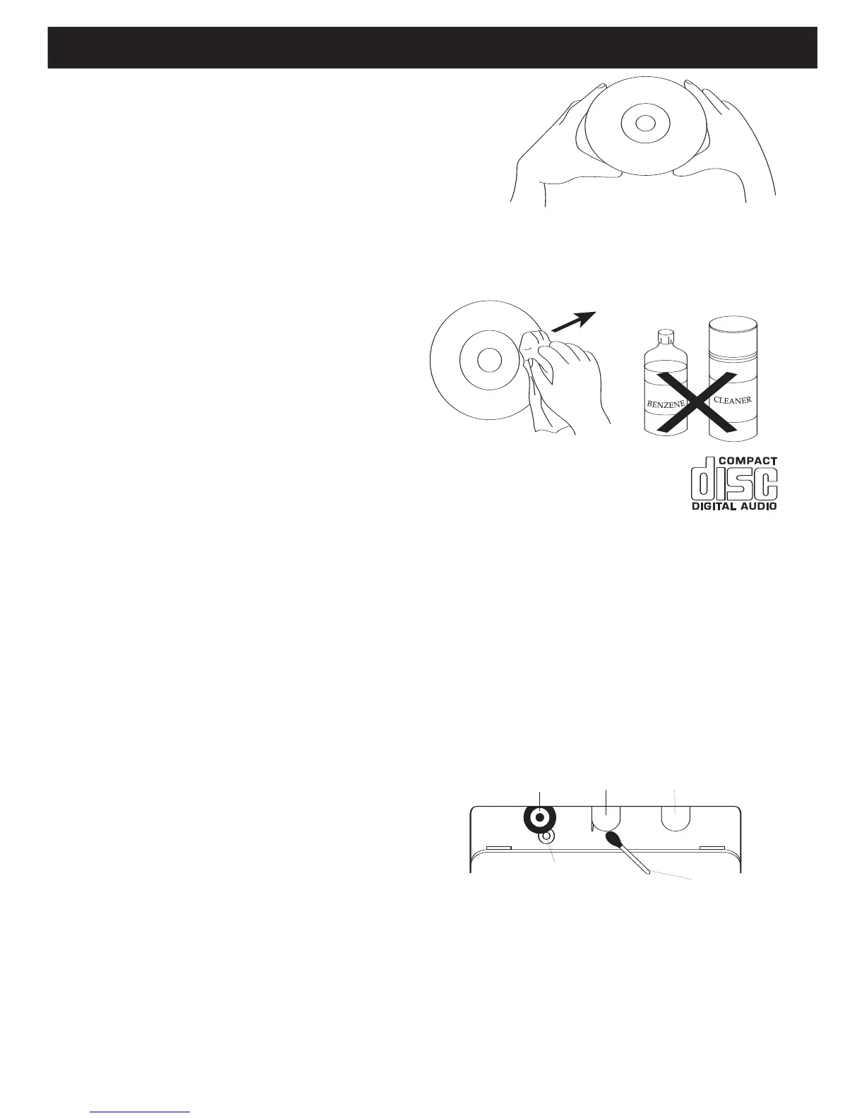 • No pegue ni escriba nada sobre ninguno de los lados del disco compacto. Los instru-