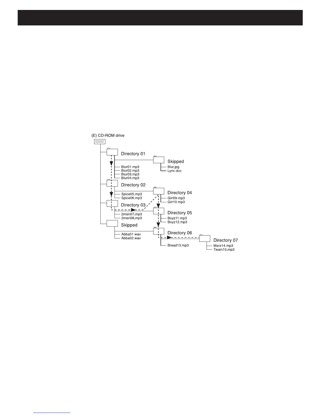 The arrow pathway shows the sequence of MP3 directory and file playback.