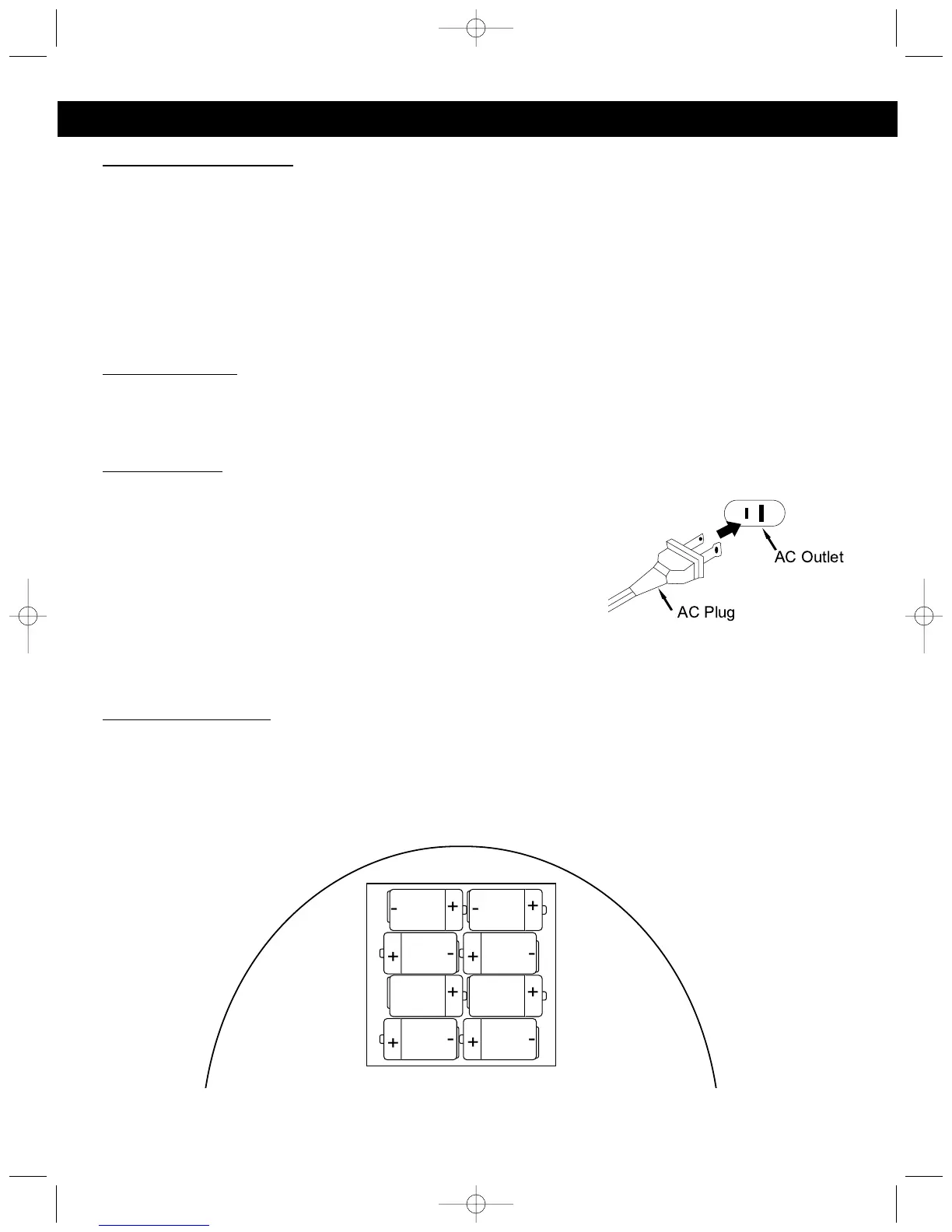 towards the rear of the unit and lifting the battery door off. Insert eight (8) ‘C’ size batteries following the