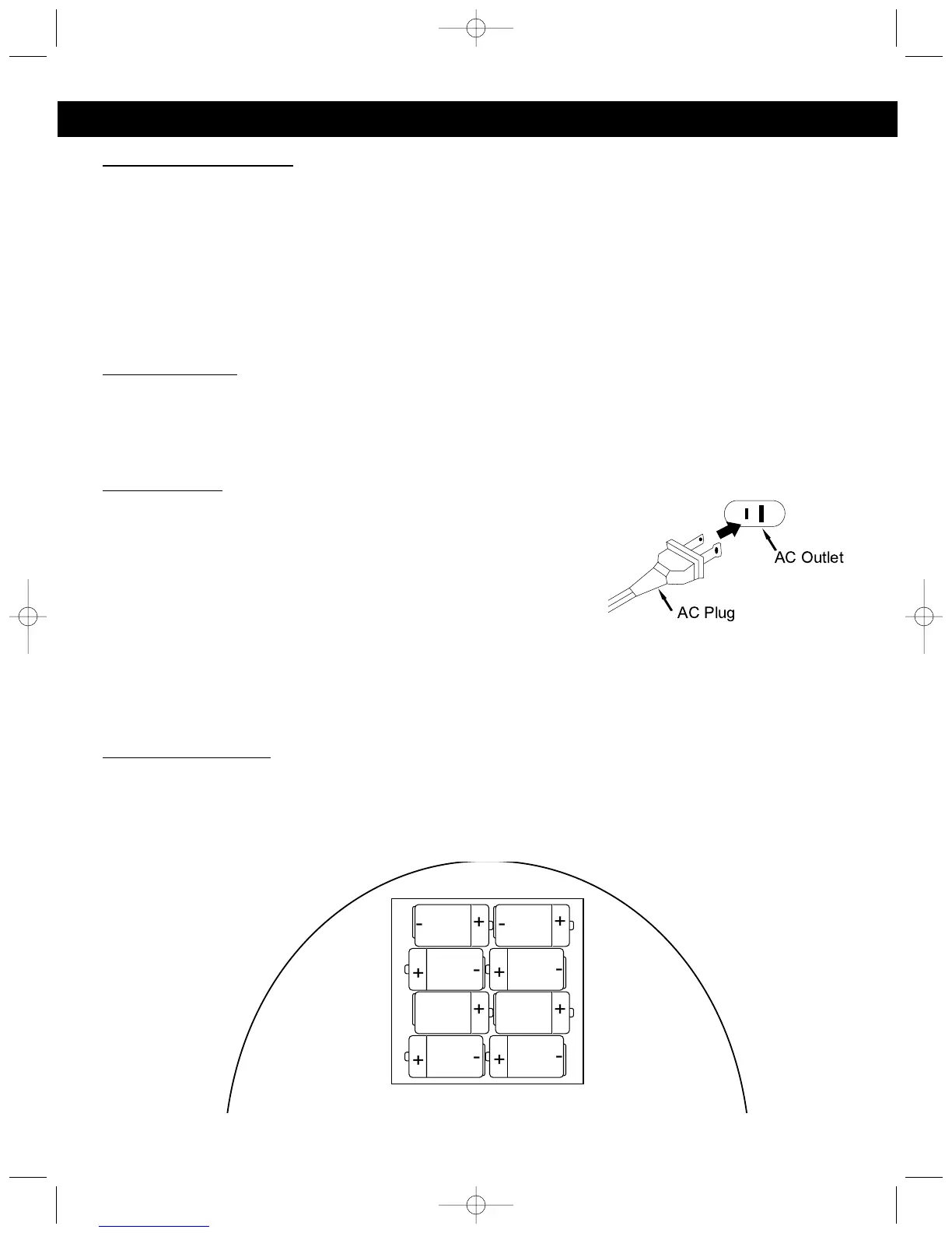 towards the rear of the unit and lifting the battery door off. Insert eight (8) ‘C’ size batteries following the