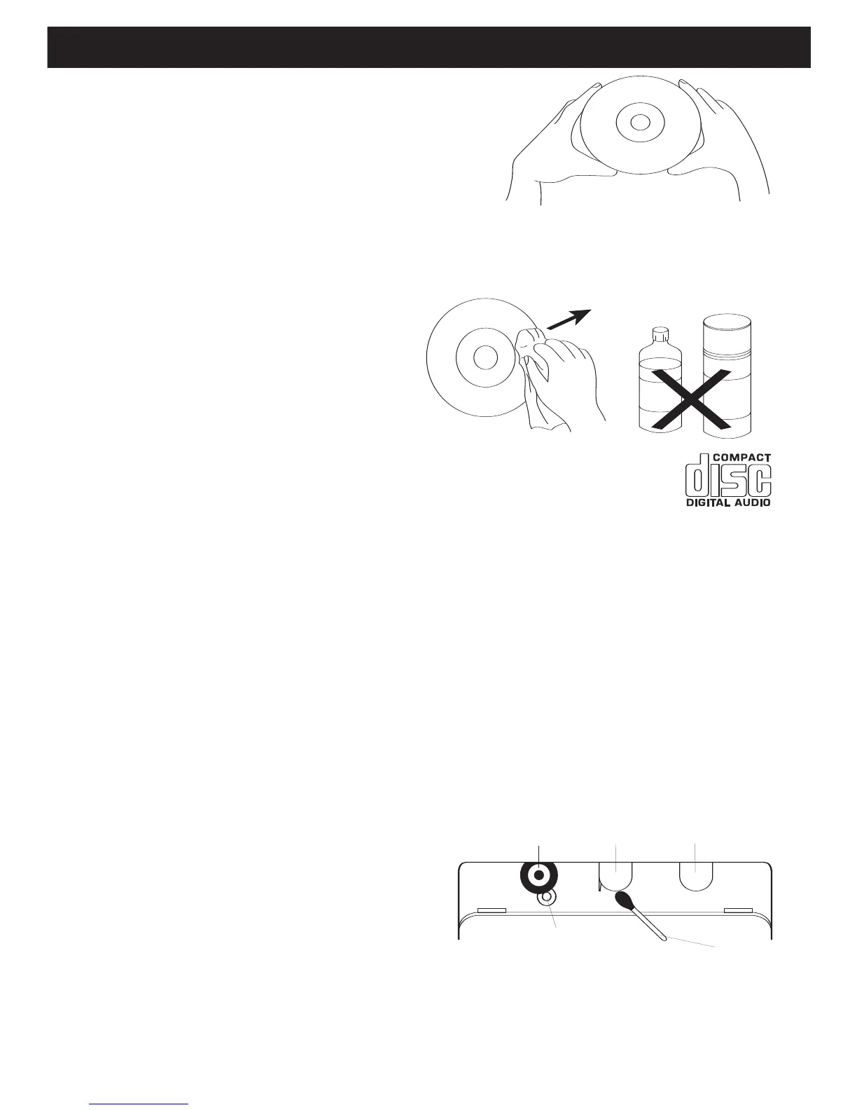 • Clean the compact disc periodically with a soft, lint-free, dry cloth. Never use deter-