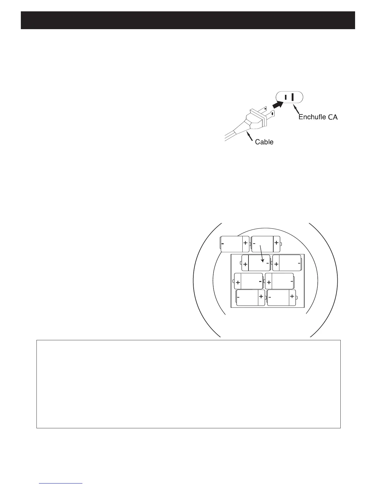 Use el cable eléctrico polarizado incluido con la unidad para operar con energía CA.