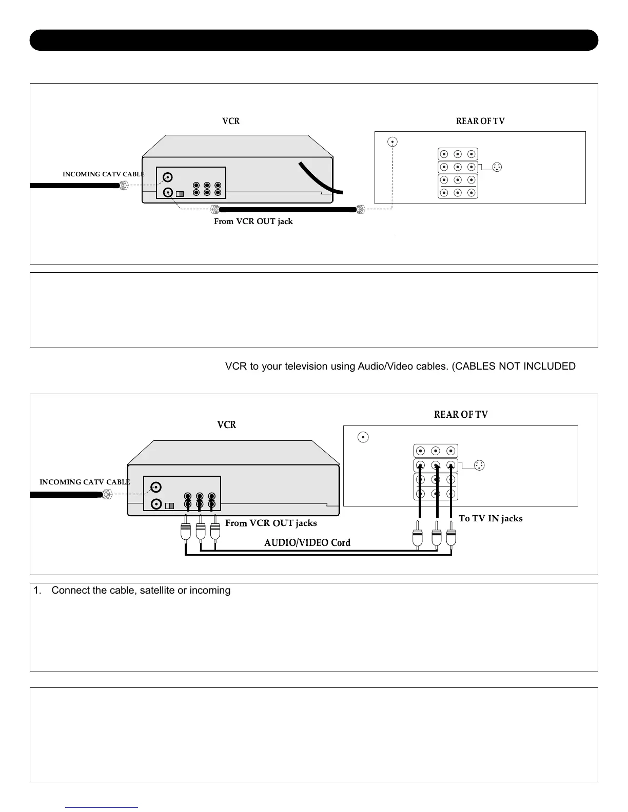 Follow the instructions below to connect a VCR to your television using Audio/Video cables. (CABLES NOT INCLUDED.)