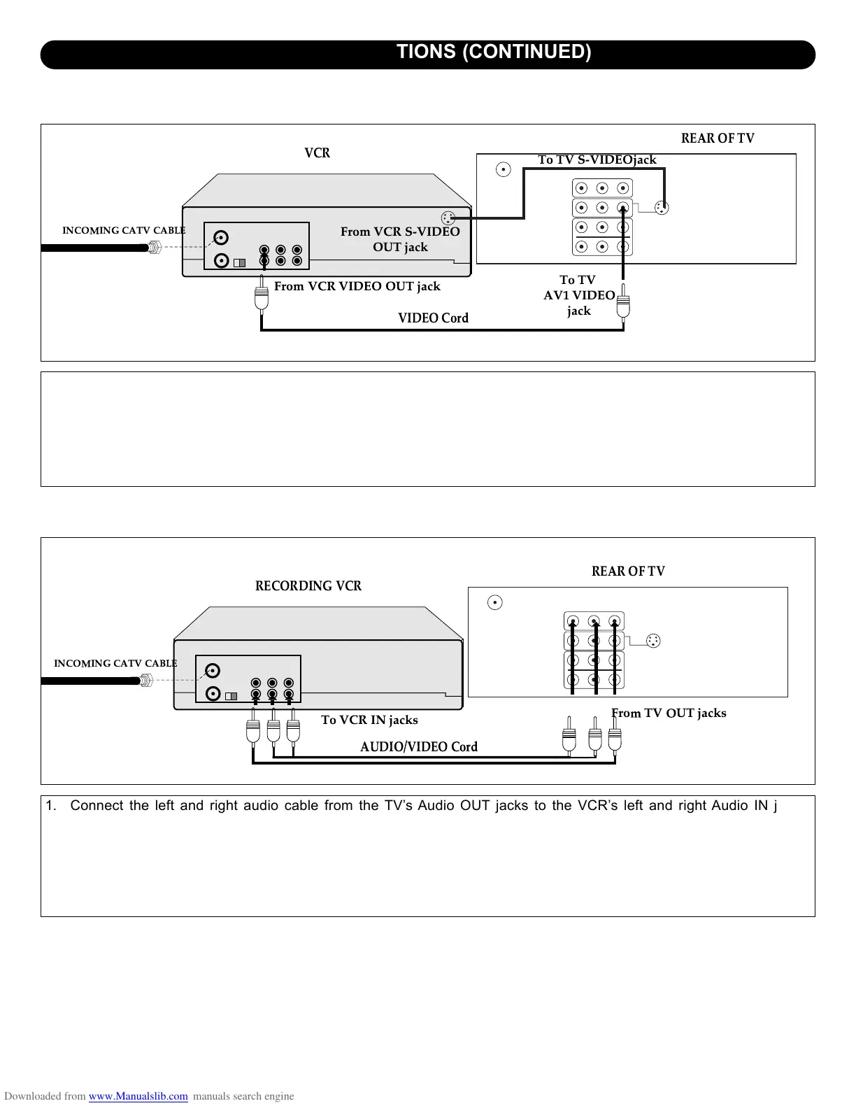 Follow the instructions below to connect a second VCR to Record from the TV. (CABLES NOT INCLUDED.)