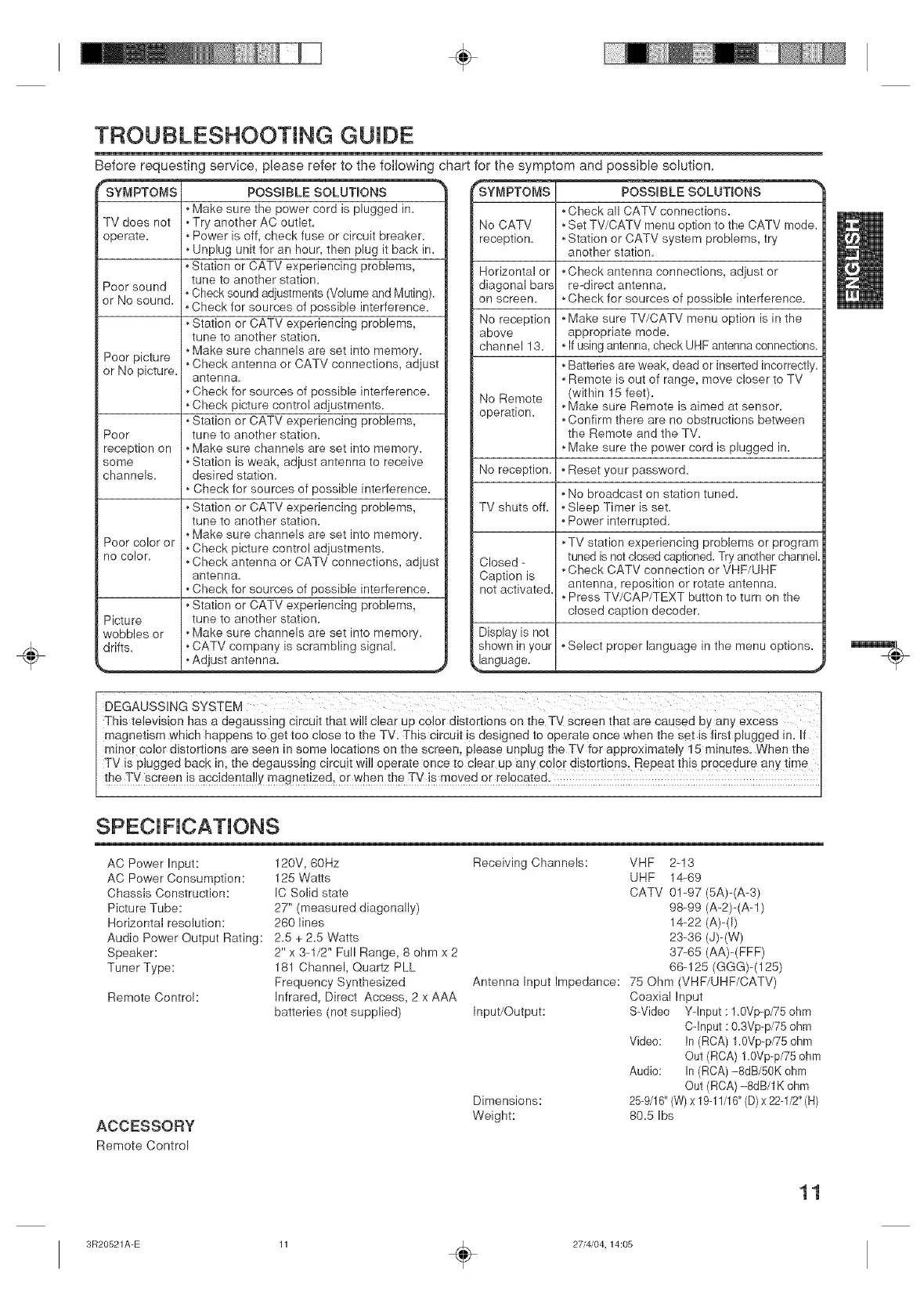 TV !s plugged back in, the degaussing circuit will operate once to clear up any color dist0rtiens_ Repeat !his procedure any time