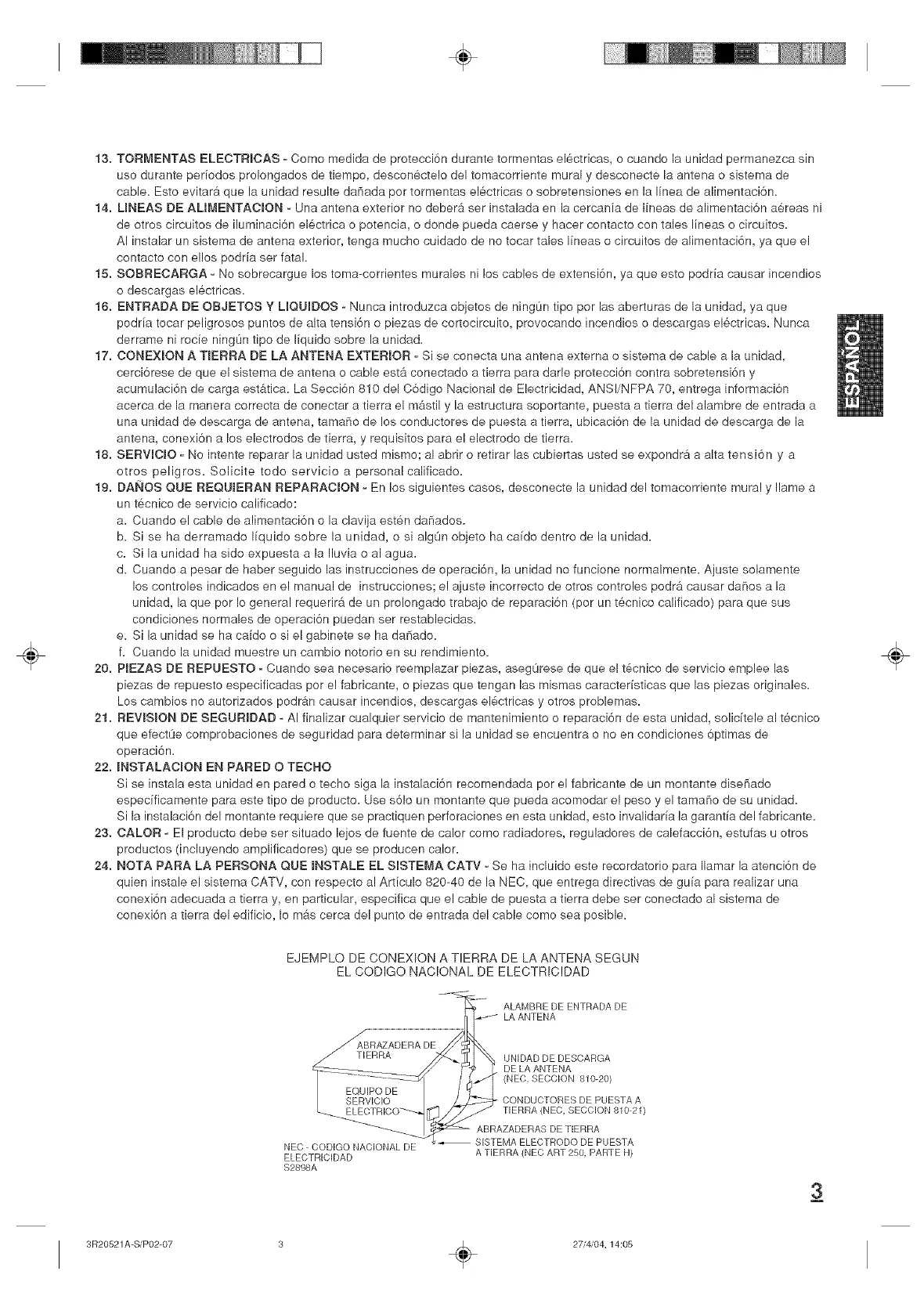 cerciorese de que el sistema de antena o cable est_ conectado a tierra para darle proteccion contra sobretensi6n y