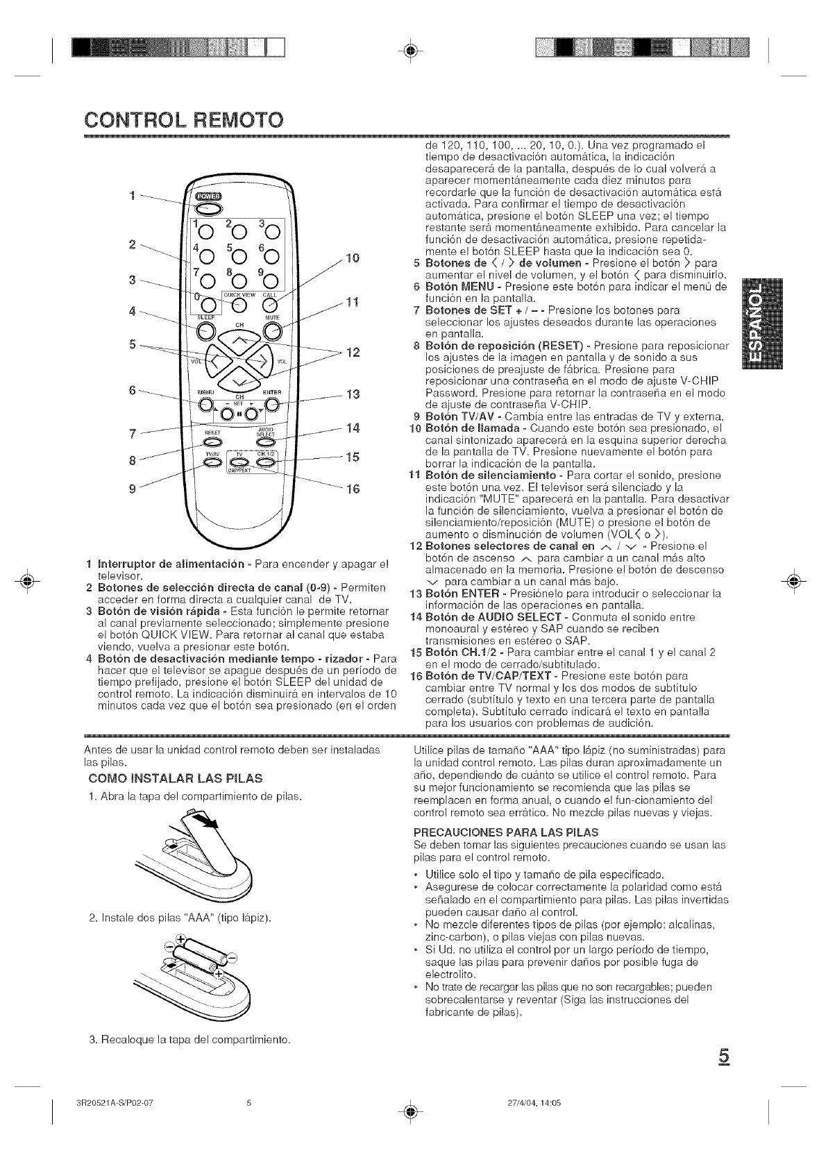 o Si Ud. no utiliza el control por un largo per[ode de tiempo,