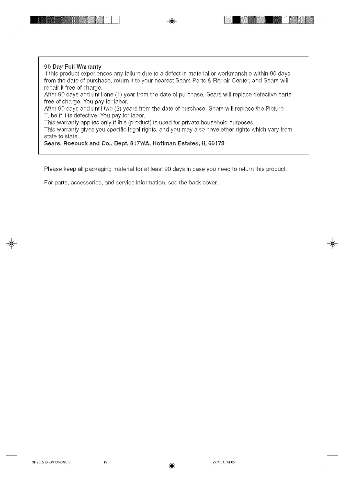from the date of purchase, return it to your nearest Sears Parts & Repair Center, and Sears wHU