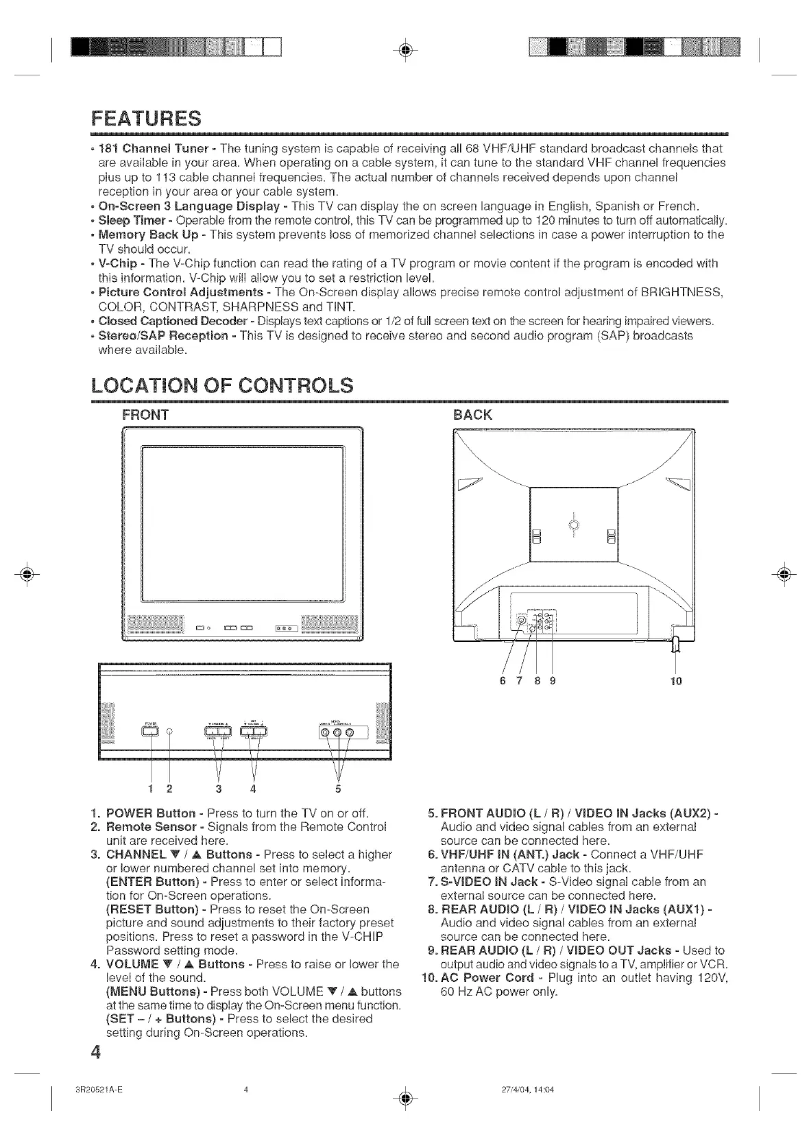 , CBoeedCaptioned Decoder - Displays text captions or 1/2 of full screen text on the screen for hearing impaired viewers.