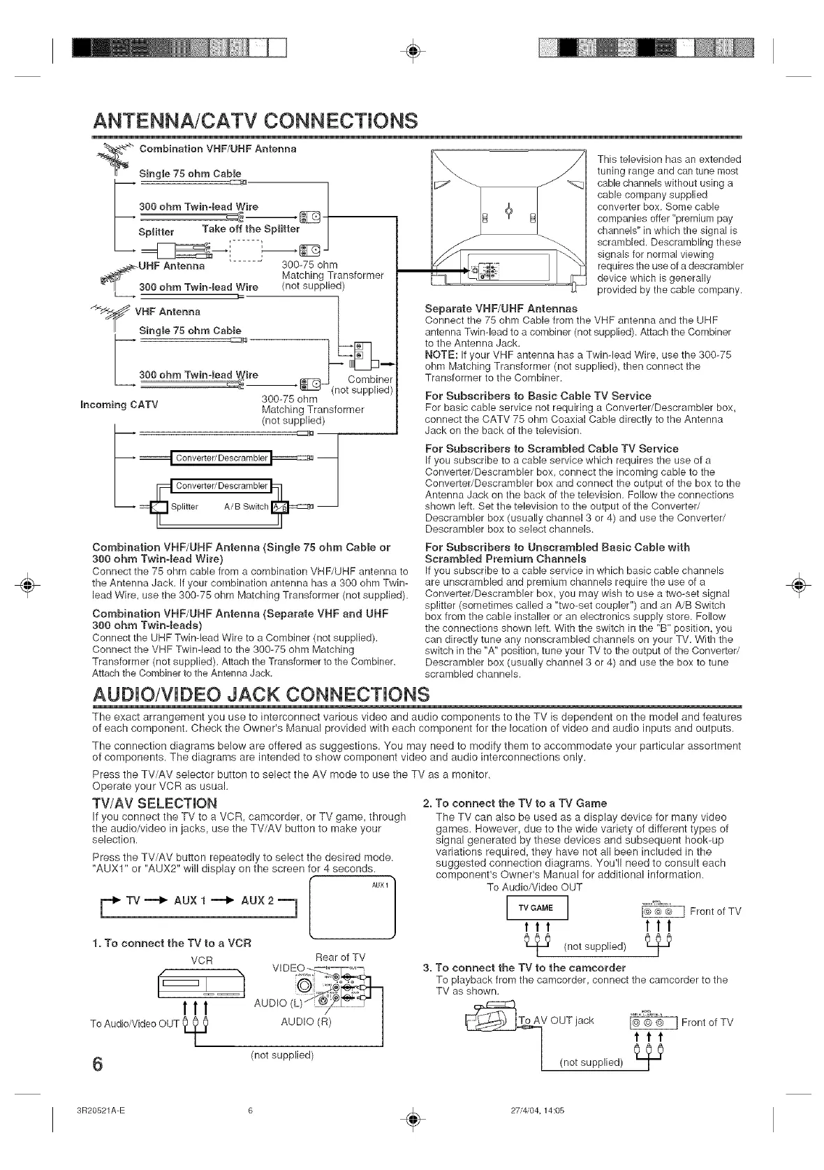 antenna Twin-lead to a combiner (not supplied). Attach the Combiner