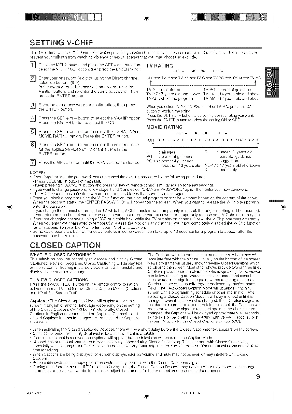 of the Closed Captions CH.1/2 button). Generally, Closed