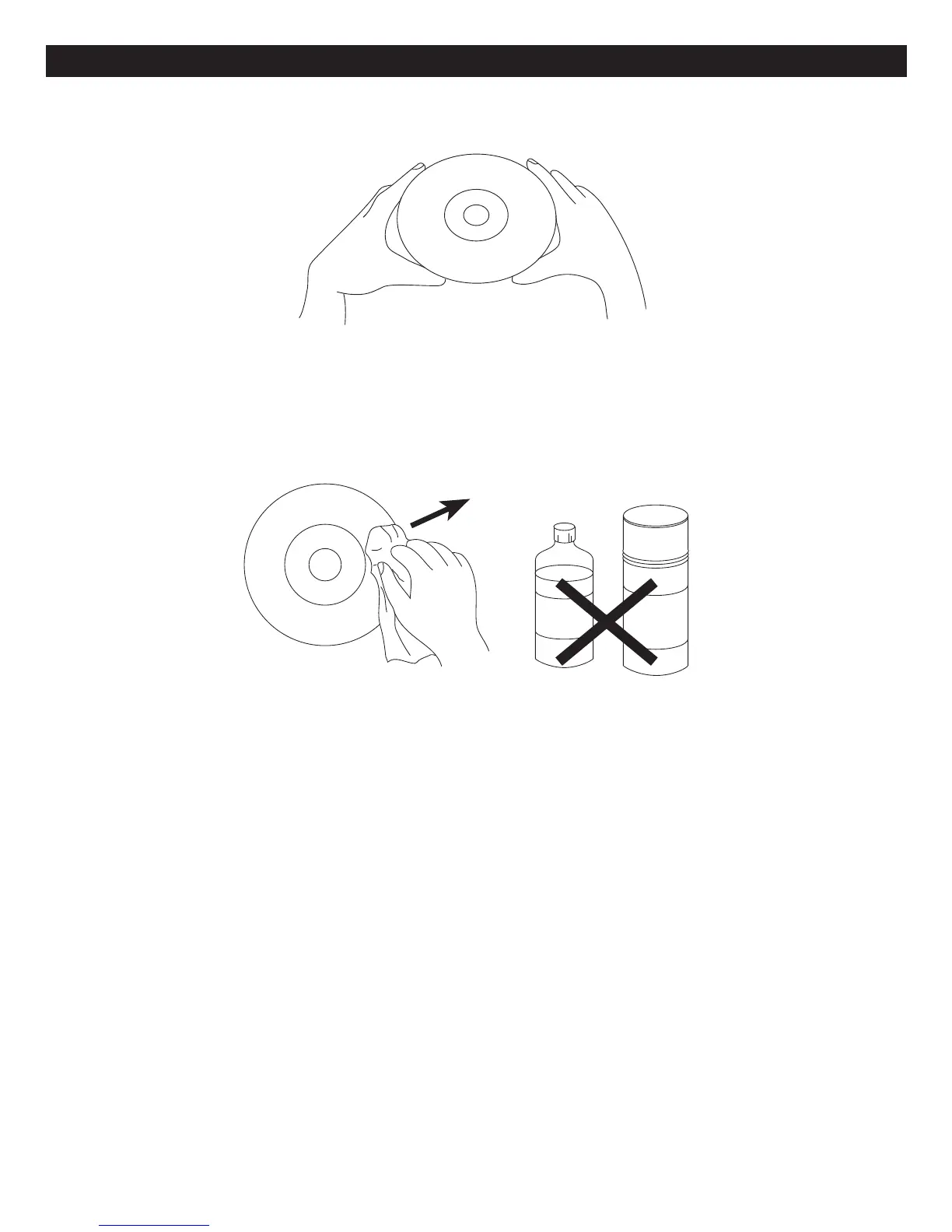 • When cleaning the disc, wipe in straight lines from the center of the disc to the outer edge of the disc. Never wipe in circular