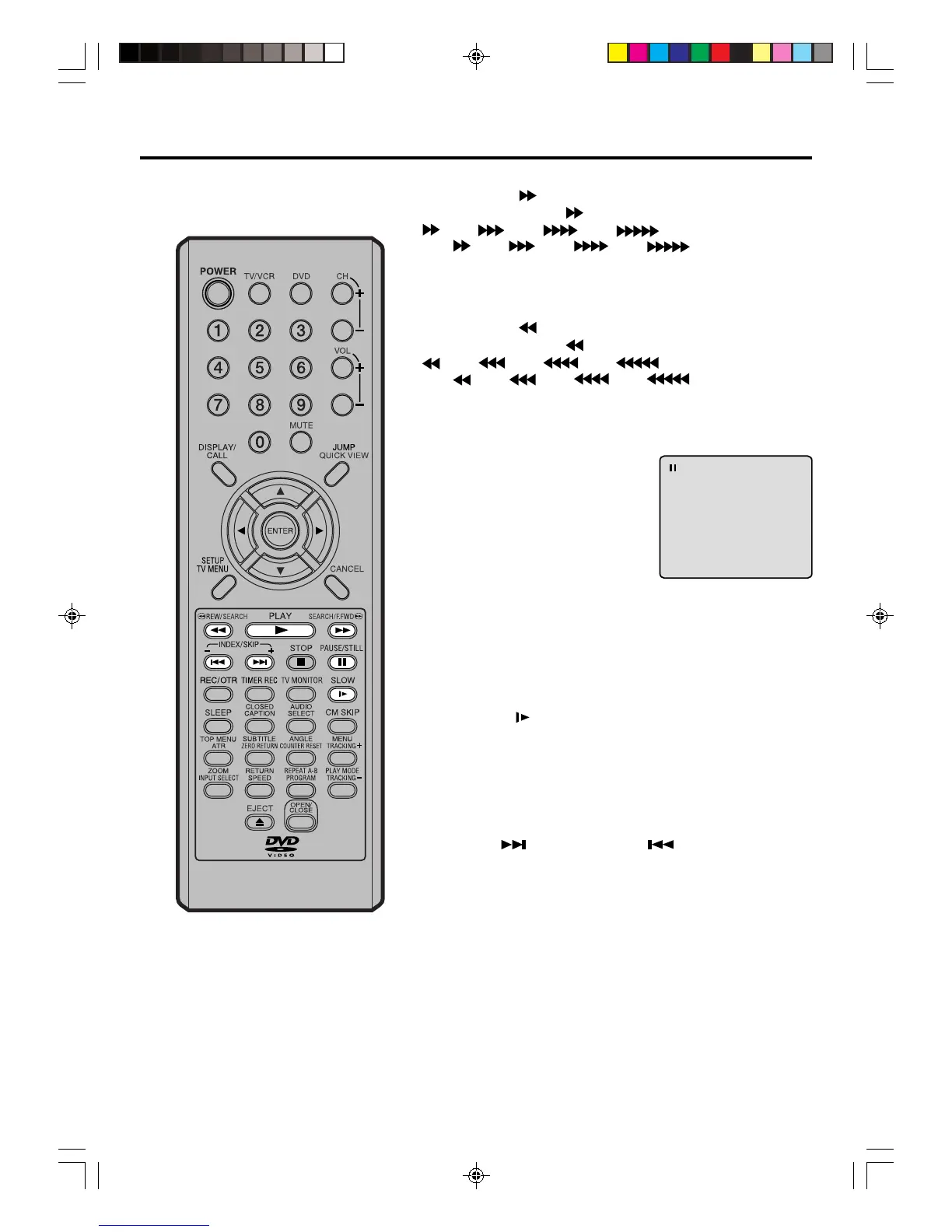 • To resume the still playback, press PAUSE/STILL.