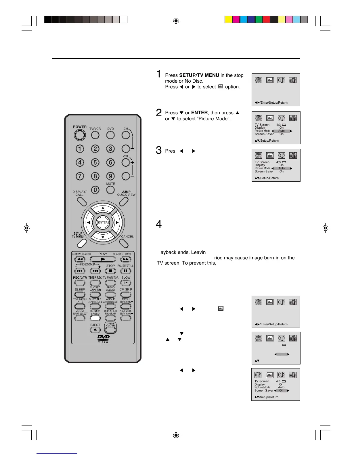 Memorex MVDT2002A - Setting the Picture Mode; Screen Saver Function
