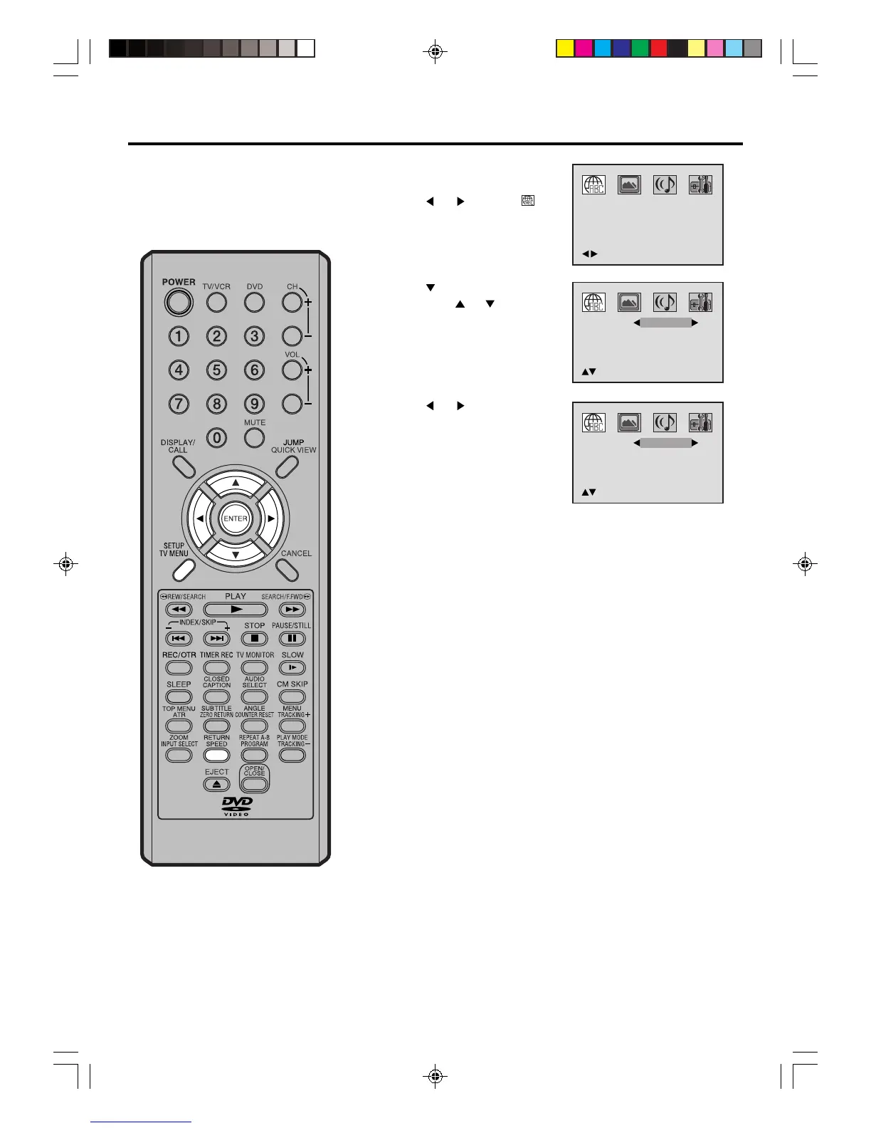 Press SETUP/TV MENU or RETURN to remove the menu