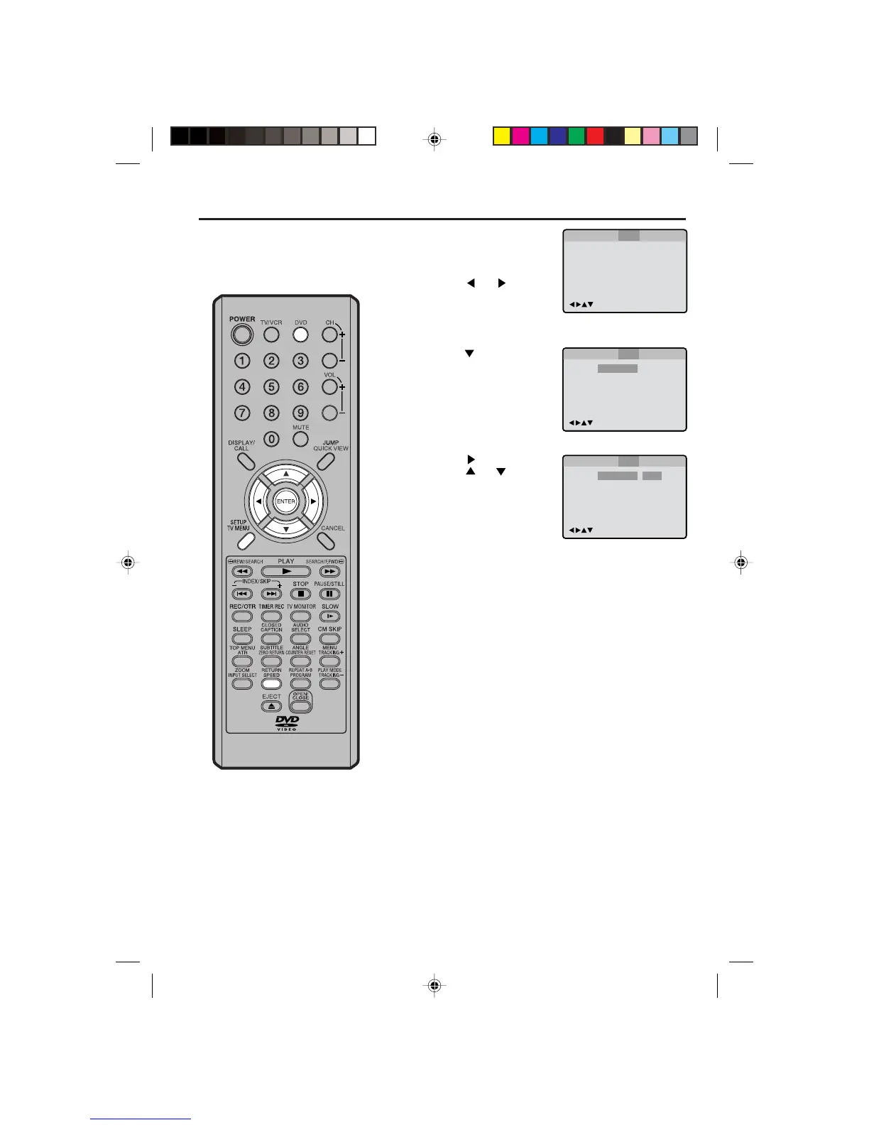 Press SETUP or RETURN to remove the MENU screen.