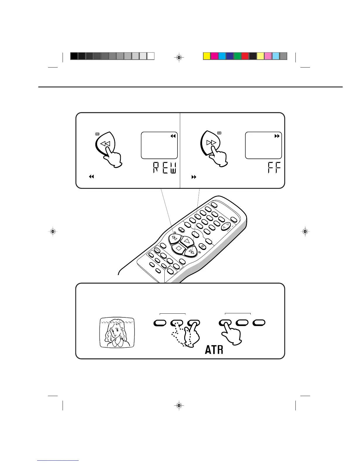 If you want to see the tape program during REW (F.FWD) mode, press and hold the REW (F.FWD) button again.