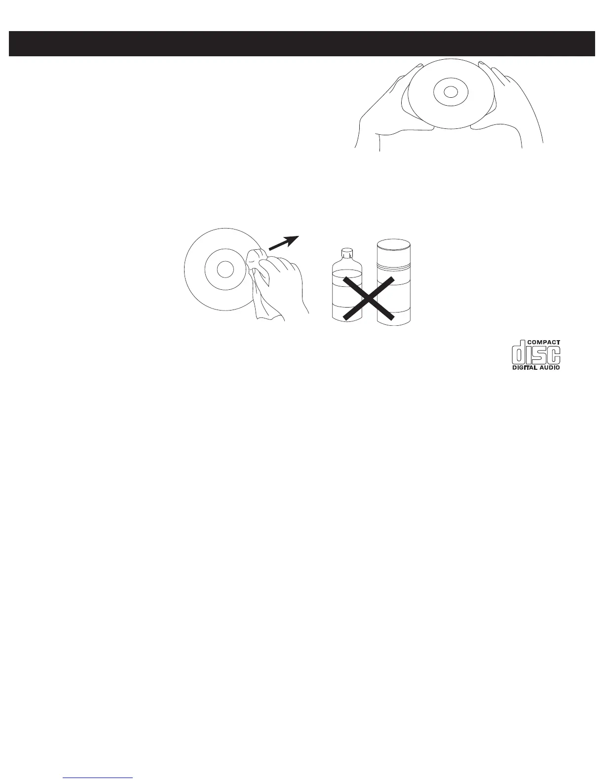 edge of the compact disc. Never wipe in circular motions.