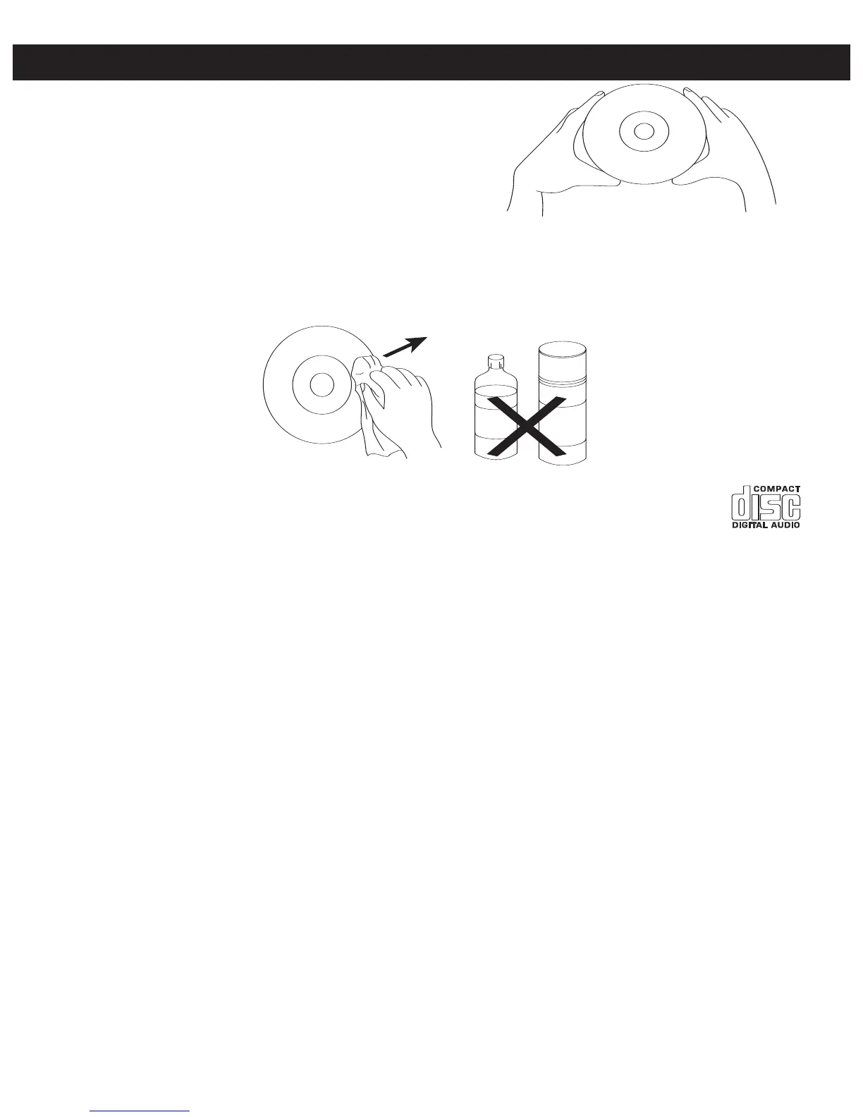 • Do not stick or write anything on either side of the compact disc. Sharp writing instruments, or the ink, may