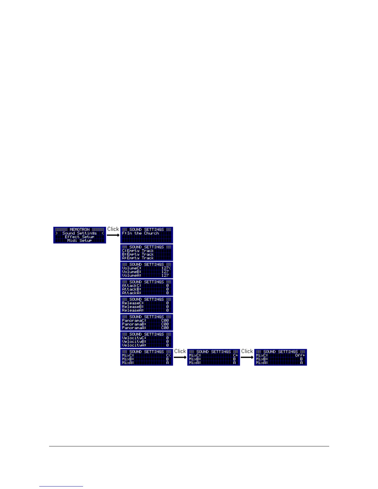 The mix mode for each track is set in the Sound Settings with the parameters "MixC:", "MixB:" and "MixA:".