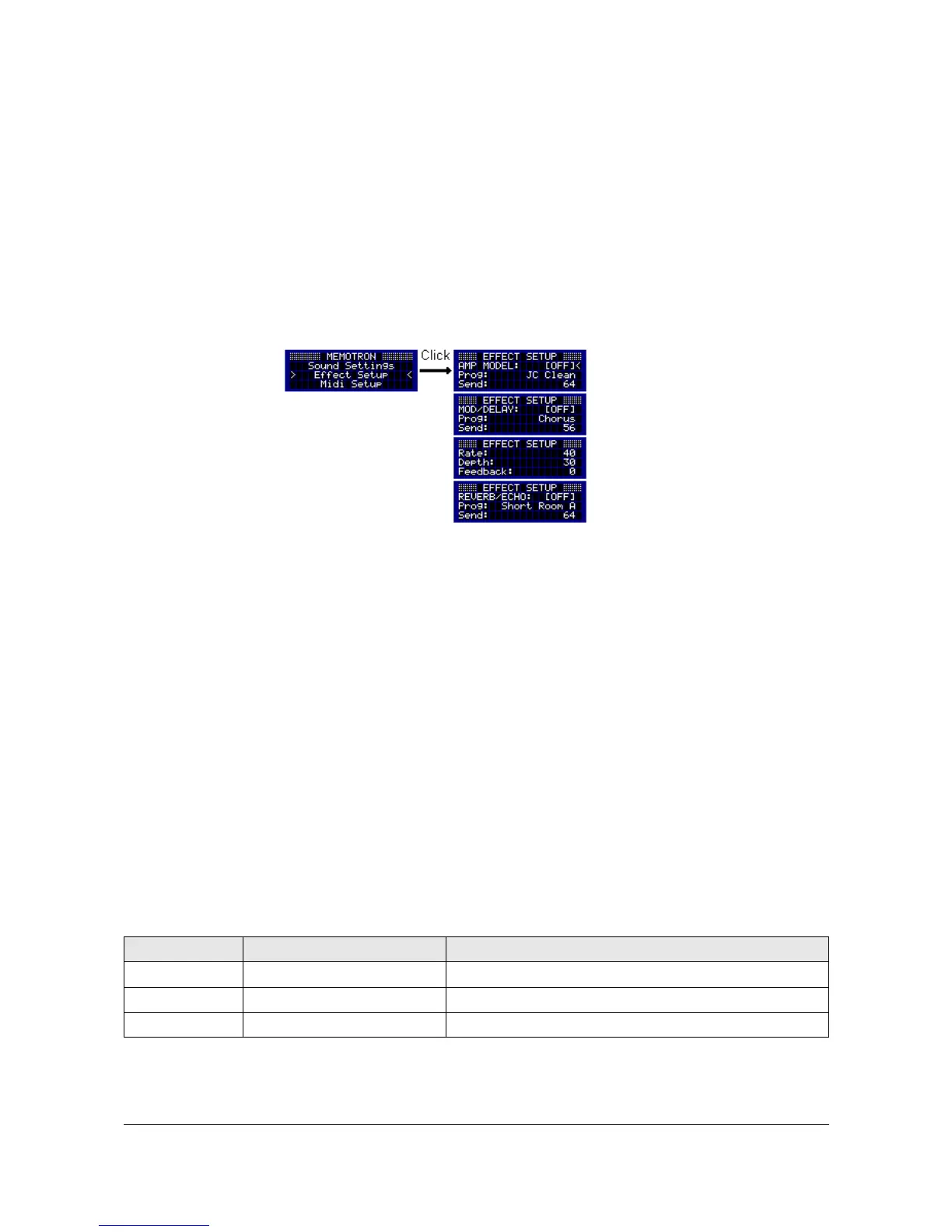 The Effect Setup is accessible from the main menu. After a parameter has been selected, it can be released