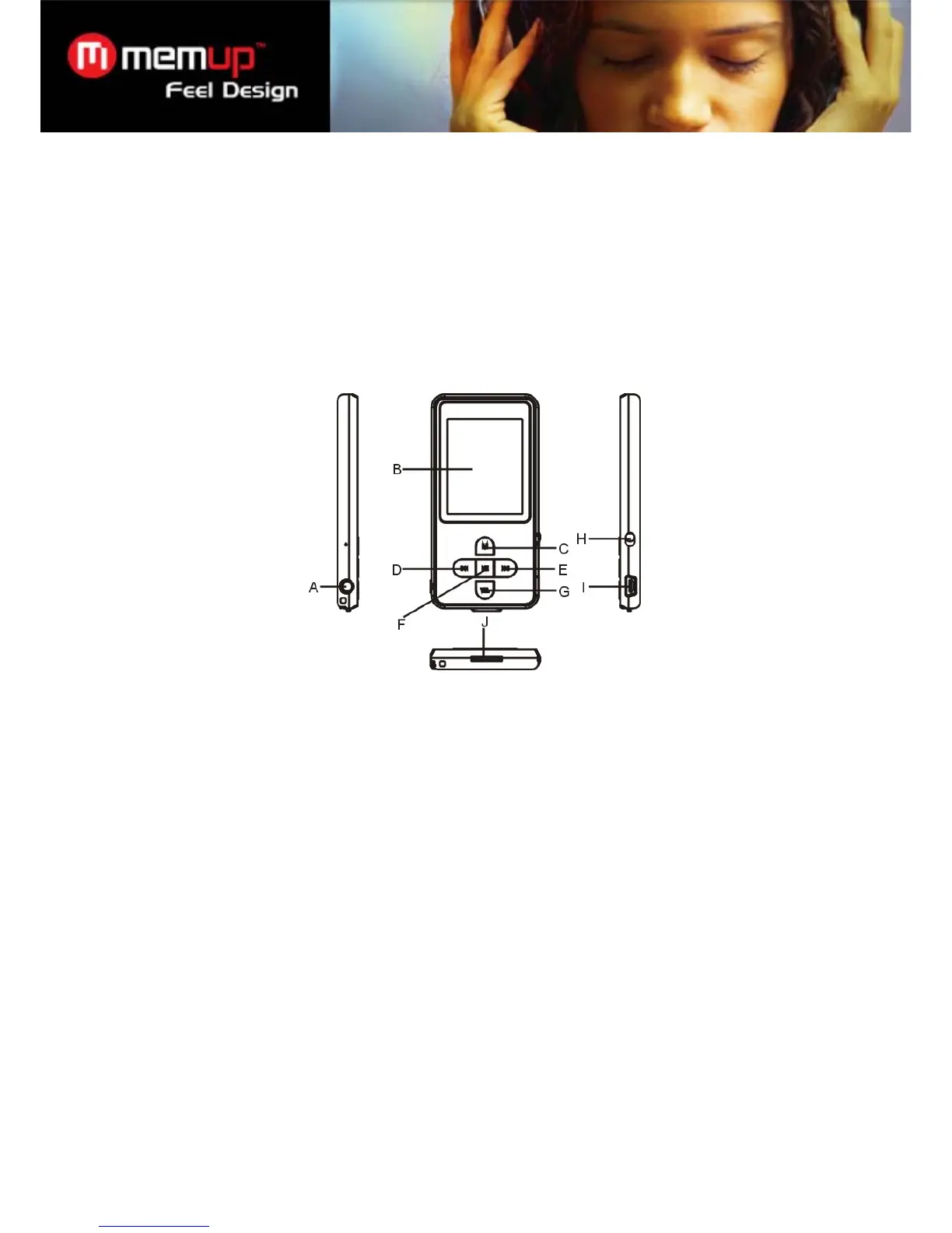 F. Play/Pause: Turn on or turn off the device. Also play or pause audios.