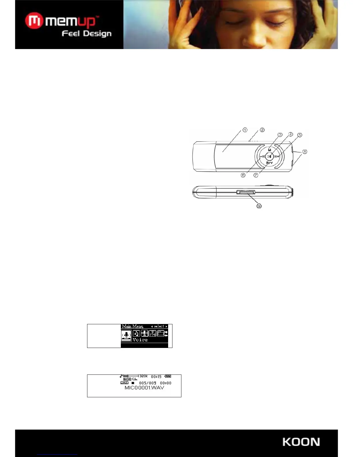 file. Volume Control: Touch Pressing “R/V” button and short pressing “-/+” button to increase or decrease