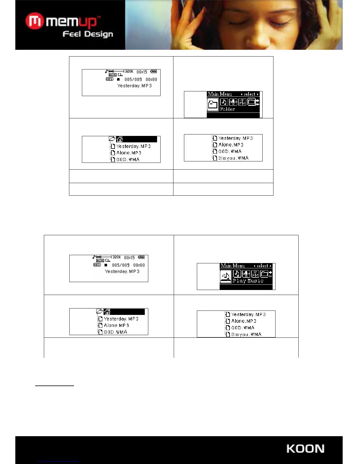 Entry the Main menu, press“-/+”key to choose “setting”,then press “Play” key and entry “setting”