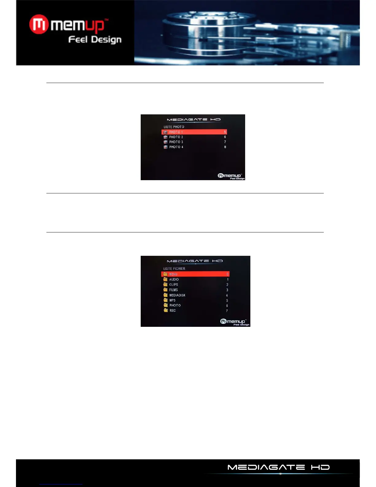 Only Photo files will be displayed under “Photo” Menu. Other media files such as Video or Audio files